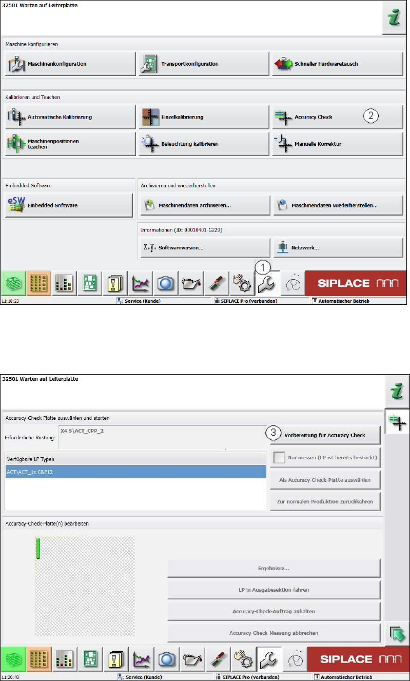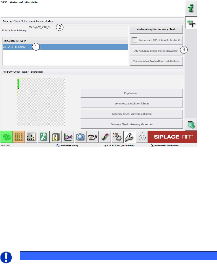 ► Klicken Sie auf die Schaltfläche Vorbereitung für Accuracy Check (3).