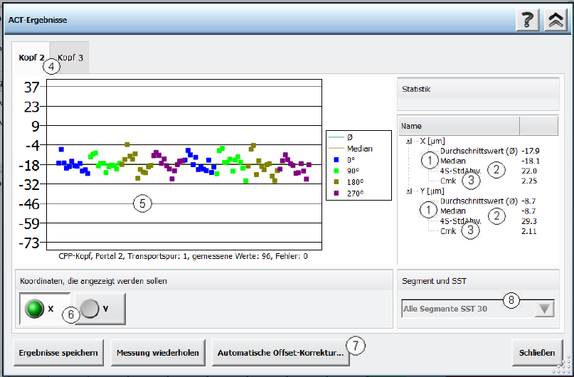 (1) Median-Wert, kann über die Schaltfläche Automatische Offset-