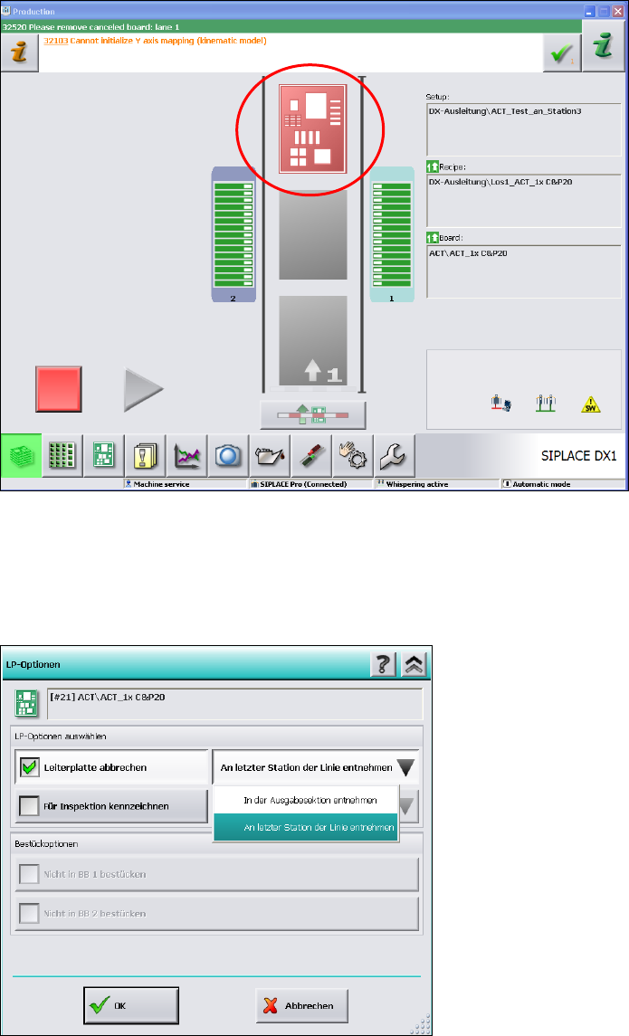 ► Wählen Sie im nächsten Fenster die Option Leiterplatte abbrechen.