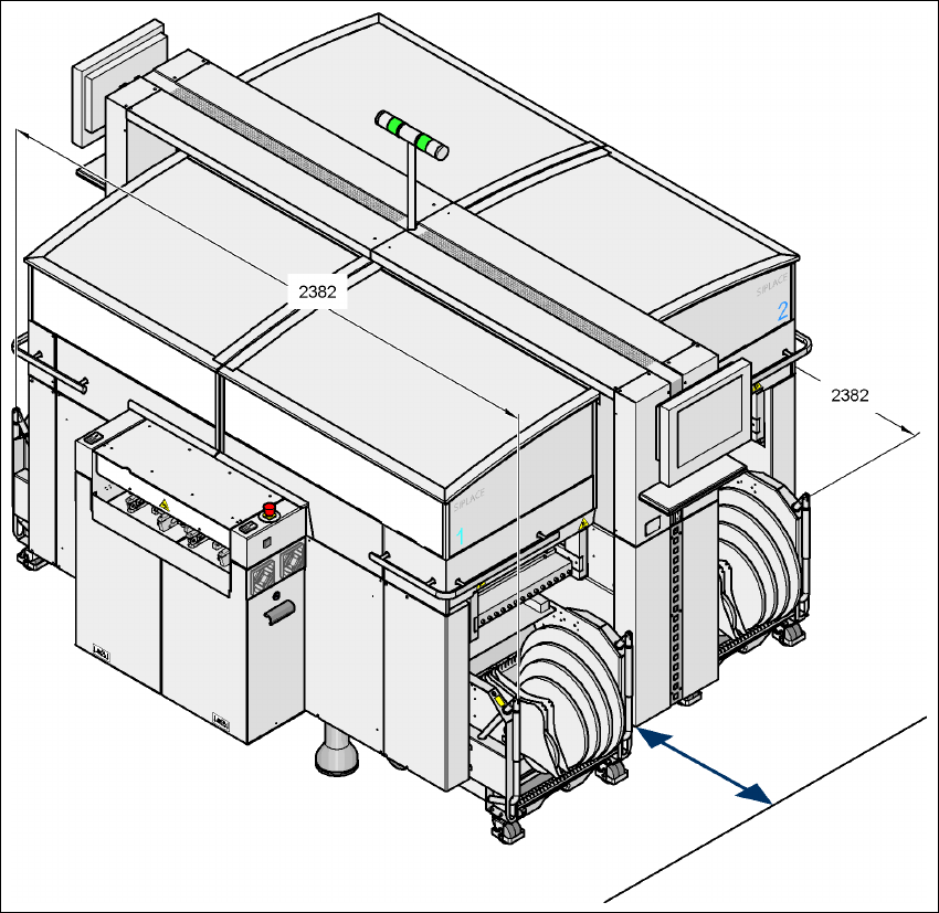 사용자 매뉴얼 SIPLACE HF 시리즈 3 기술 자료 소프트웨어 버전 SR.505.xx 2004 년 7 월 미국판 3.9 실장기 치수 및 무게 119 3.9.5 HF 장비에 있는 컴포넌트 트롤리의 이동 거리 3 그림 3.9 - 3 HF 장비에 있는 컴포넌트 트롤리의 이동 거리 HF 장비에 있는 컴포넌트 트롤리의 이동 거리 – 600 mm ( 손 잡 이가 접 혀 진 상태 ) – 900 mm …