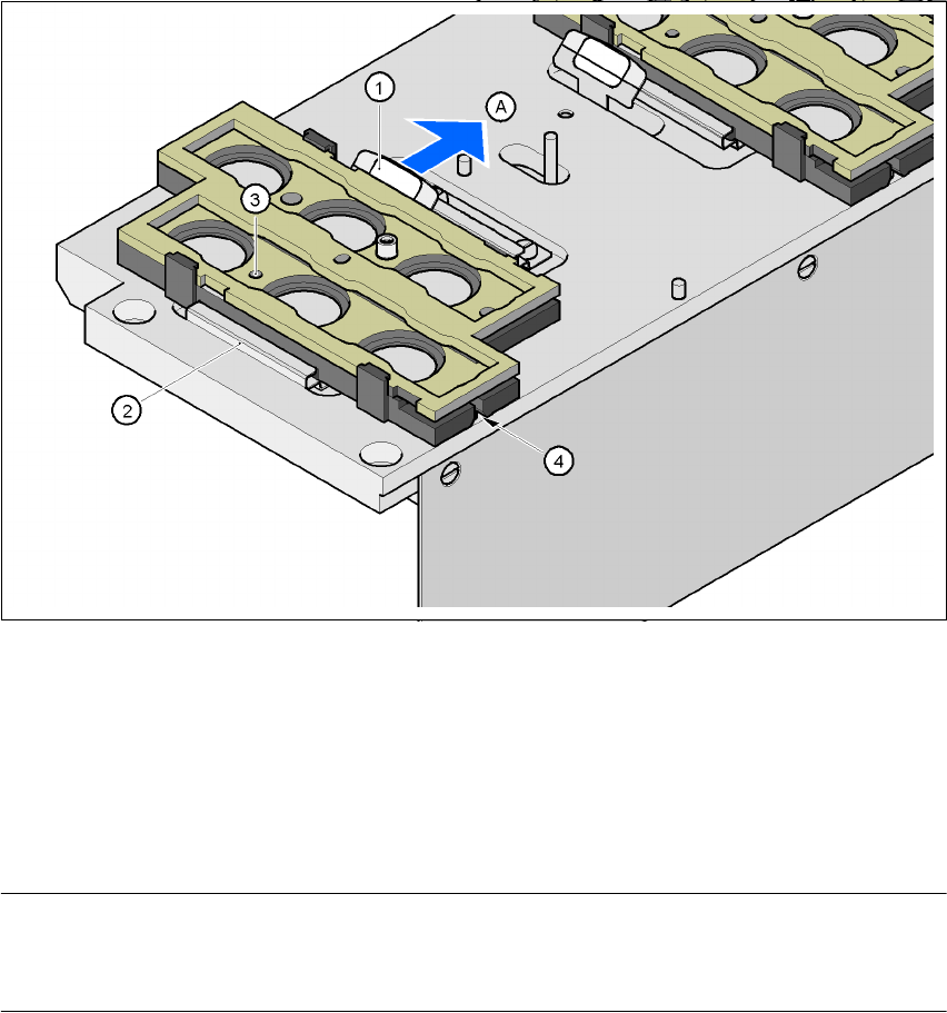 센터링 핀이 센터링 구멍 ( 항목 3) 및 슬롯 ( 항목 4) 안으로 들어갈 수 있도록 매거진을 삽입했