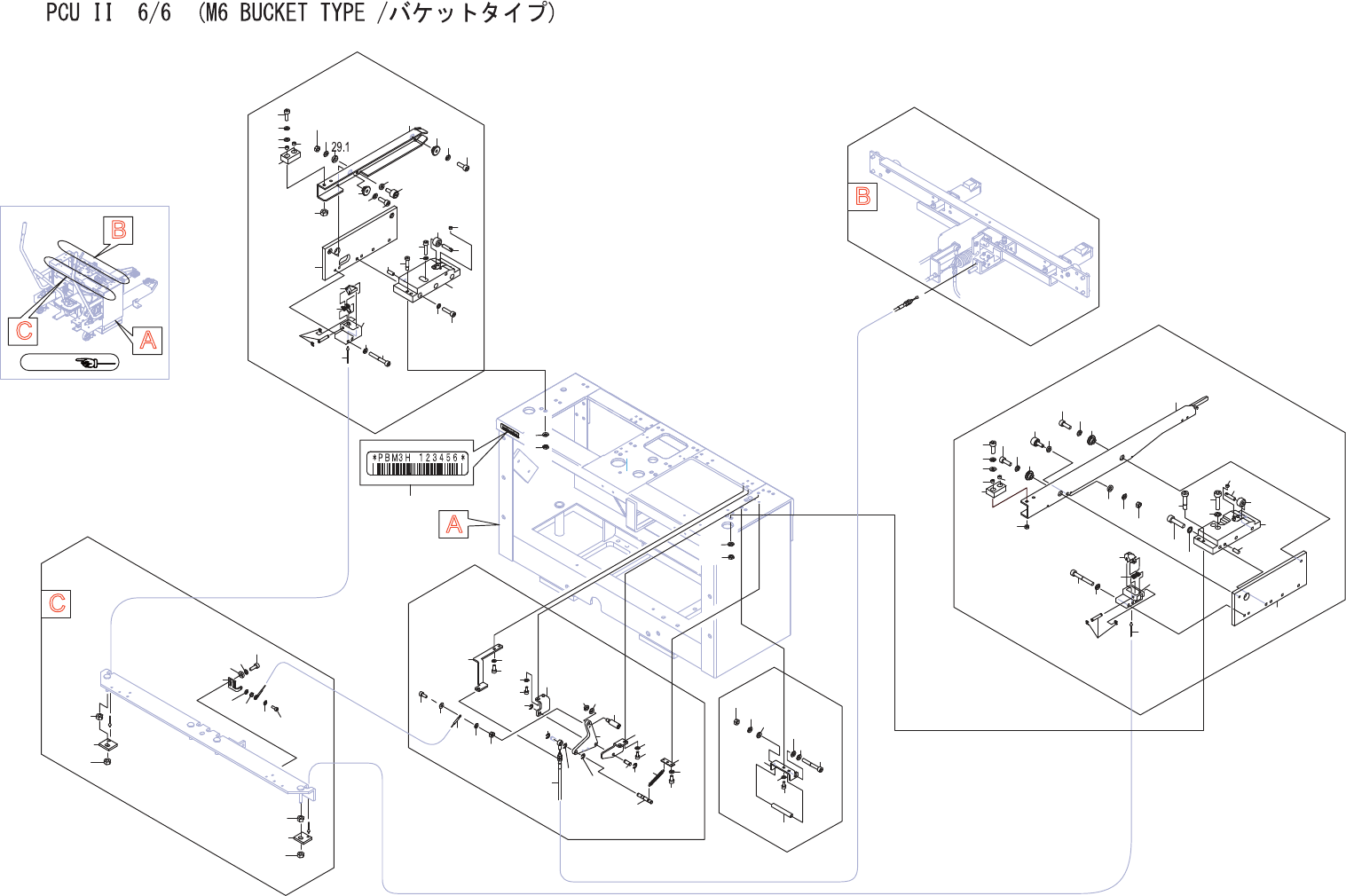 PCUII6/6(M6BUCKETTYPE/バケットタイプ) UX05600 No. Dr g .No.&CodeNo. QTY Descri p tion Ratin g Materials Remarks 番号 図番 &コー ド番号 個数 品名 規 格 材質 備考 1 2MGKPX010400 1 BLOCK ブ ロッ ク FE 2 H20947 1 PIN,PARALLEL ピン 平行 …