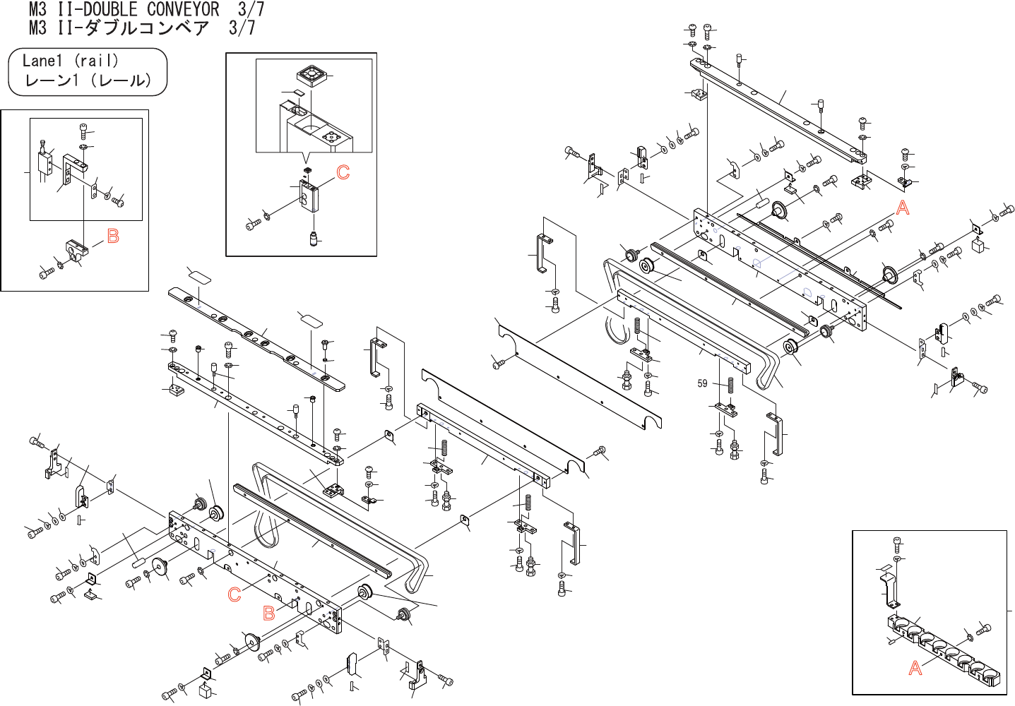 M3II-DOUBLECONVEYOR3/7 M3II-ダブルコンベア3/7 UQ04217 No. Dr g .No.&CodeNo. QTY Descri p tion Ratin g Materials Remarks 番号 図番 &コー ド番号 個数 品名 規 格 材質 備考 1 PM052G9 1 PLATE,RETAINING プ レー ト 押 え FE 2 PM0KDA1 6 B…