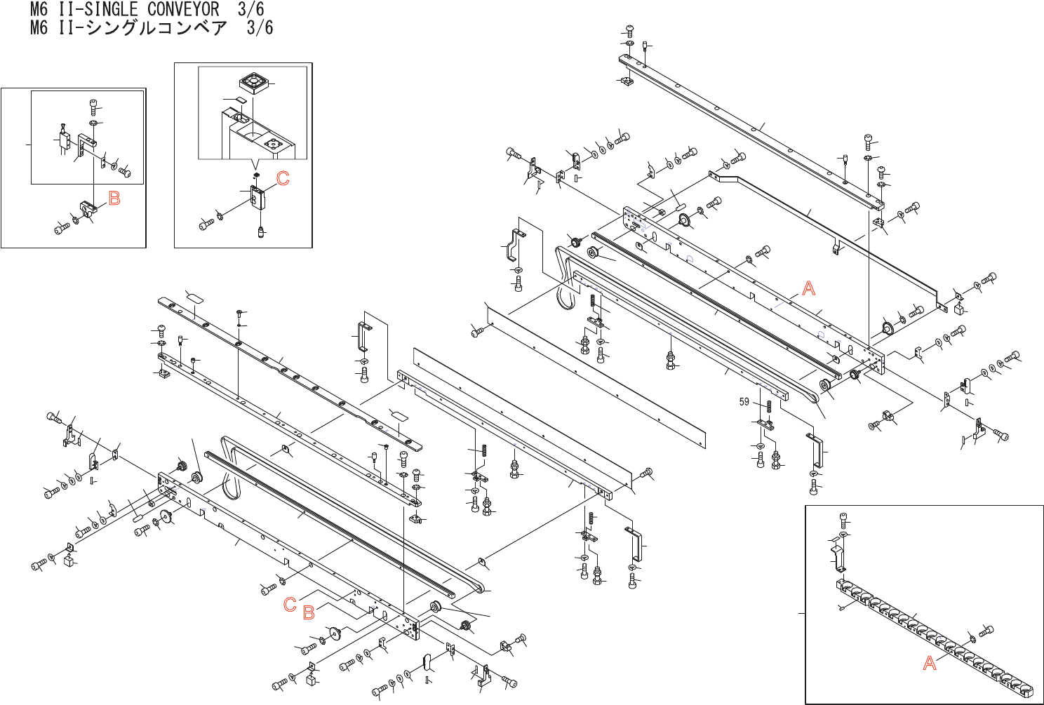 M6II-SINGLECONVEYOR3/6 M6II-シングルコンベア3/6 UQ04316 No. Dr g .No.&CodeNo. QTY Descri p tion Ratin g Materials Remarks 番号 図番 &コー ド番号 個数 品名 規 格 材質 備考 1 PM0BBR1 1 PLATE,RETAINING プ レー ト 押 え FE 2 PM0KDA1 10…