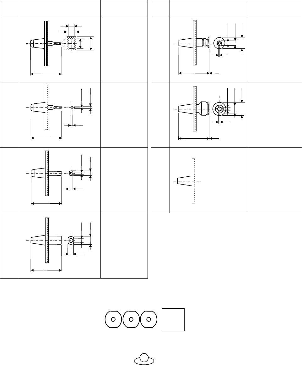 CM212-M 2005.1201 - 10 - 4.2 贴装吸嘴的种类与构成 ■ 高速贴装头用吸嘴 所有的吸嘴与编带料架相同, 均为选购件规格。 因此可 根据客户的生产形态, 充分发挥 CM212-M 的性能, 选择 最佳组合。 ※ 与 CM402 系列的吸嘴为兼用。 No. 形状 ( 单位 : mm) 对象元件 ( 代表例 ) No. 形状 ( 单位 : mm) 对象元件 ( 代表例 ) 205 0603R, C 130 3225R…
