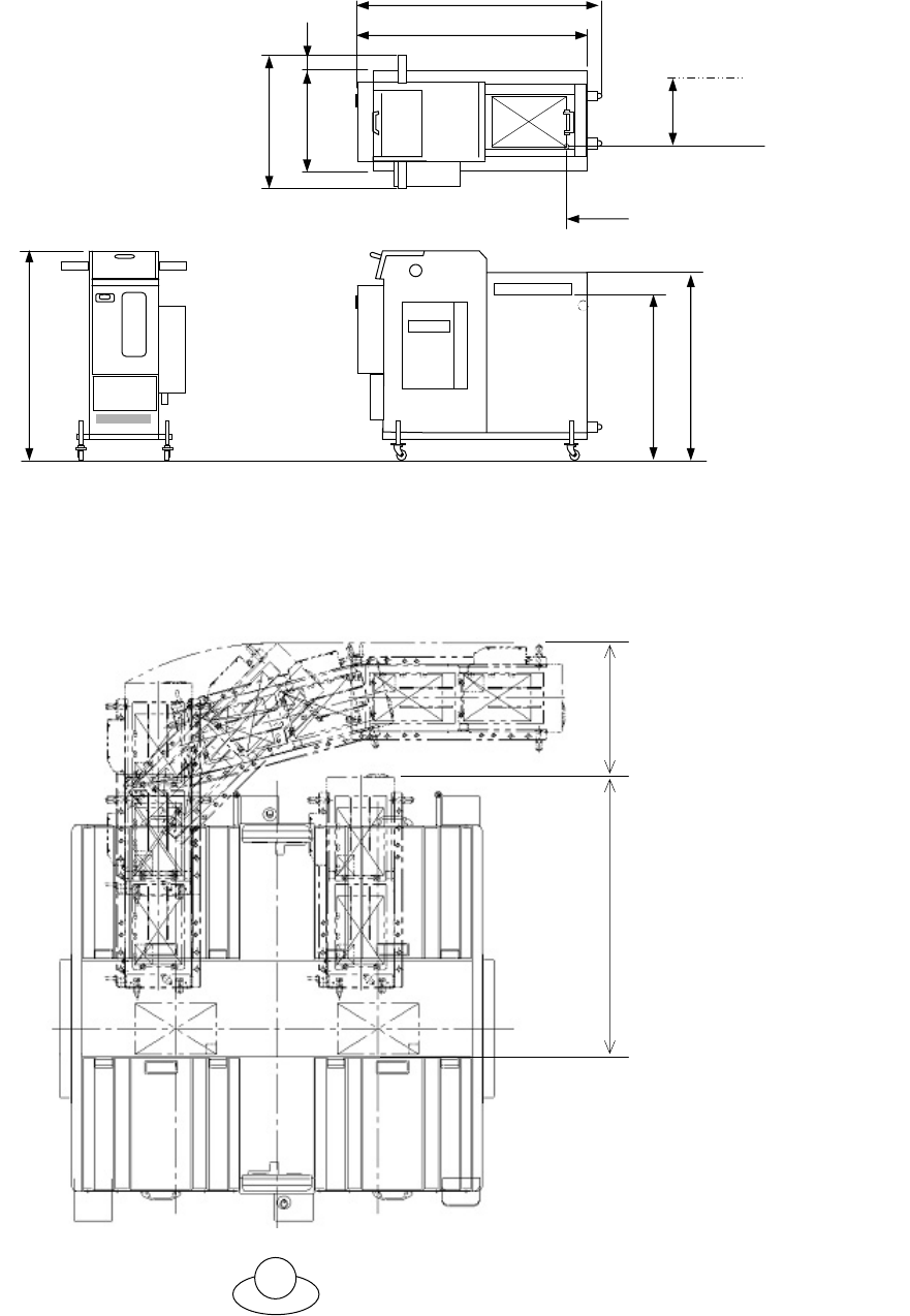CM212-M 2005.1201 - 50 - ■ 直接托盘式供料器 DT40S-20 ( 选购件 ) 外形尺寸 ( 单体 ) ( 单位 : mm) 外形尺寸 ( 连接时 ) ※ 1 托盘供给面的高度 888 mm 是 CM212-M 的基板搬送高度为 900 mm 时的标准值。 其可调整范围为 888 mm 。 ※ 2 400 mm × 250 mm 尺寸的基板中心位置。 +139.5 -16.5 317 203 基板中心 ※ 2 …