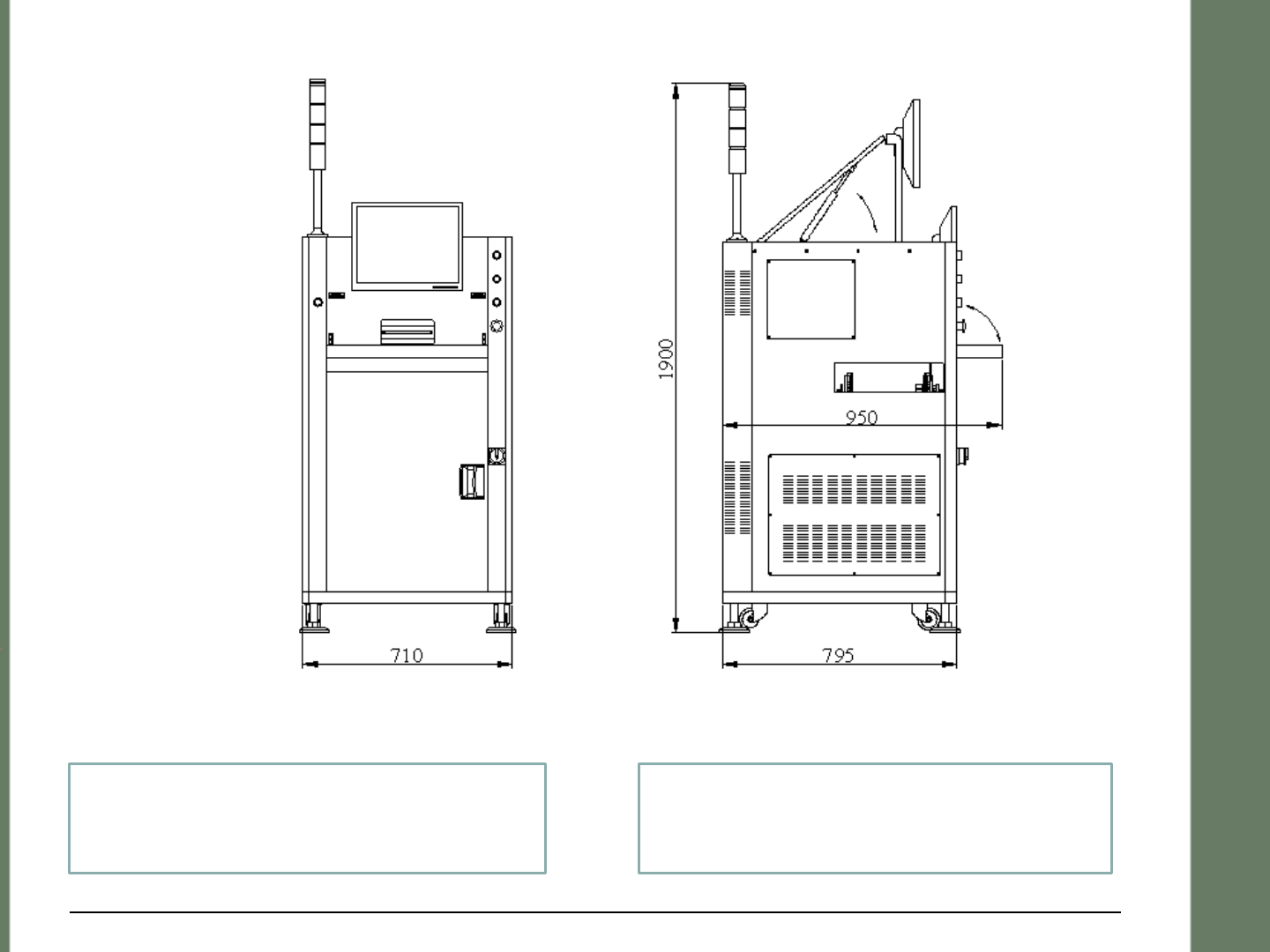 宽:710mm 长:950mm 高:1445mm(不含信号灯)