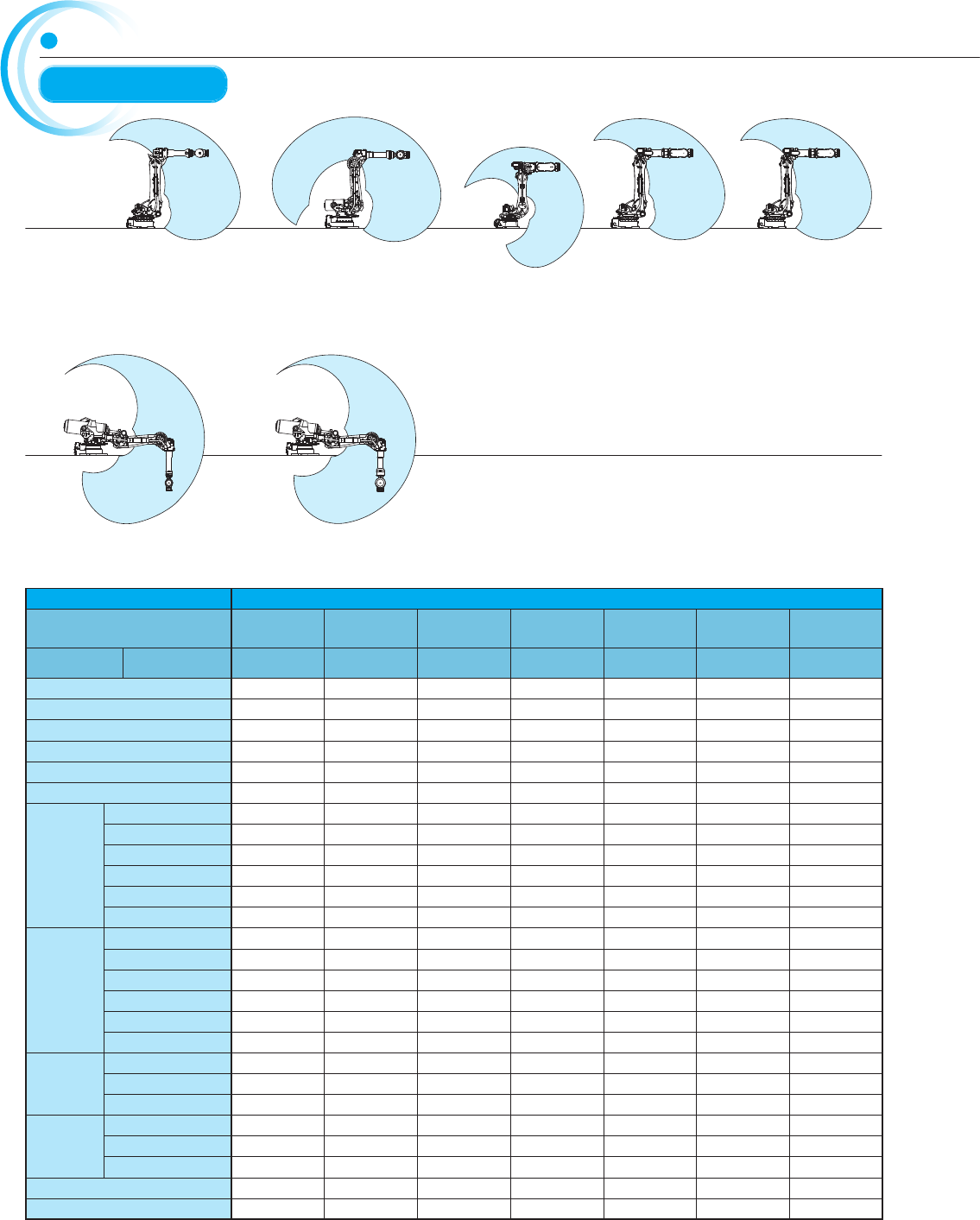 用途 搬运 (通用用途) 机器人型号 MotoMINI MOTOMAN- MOTOMAN- HC10DT HC20DT 适用 控制柜 YRC1000micro ○ ○ ○ YRC1000 ○ ○ 设置 * 1 F ,W ,C,T F ,W ,C,T F ,W,C,T 自由度 6 6 6 负载 0.5kg (Max.1kg * 5 ) 10 kg 20kg 垂直伸长度 495mm 2400mm 3400mm 水平伸长度 350mm 120…
