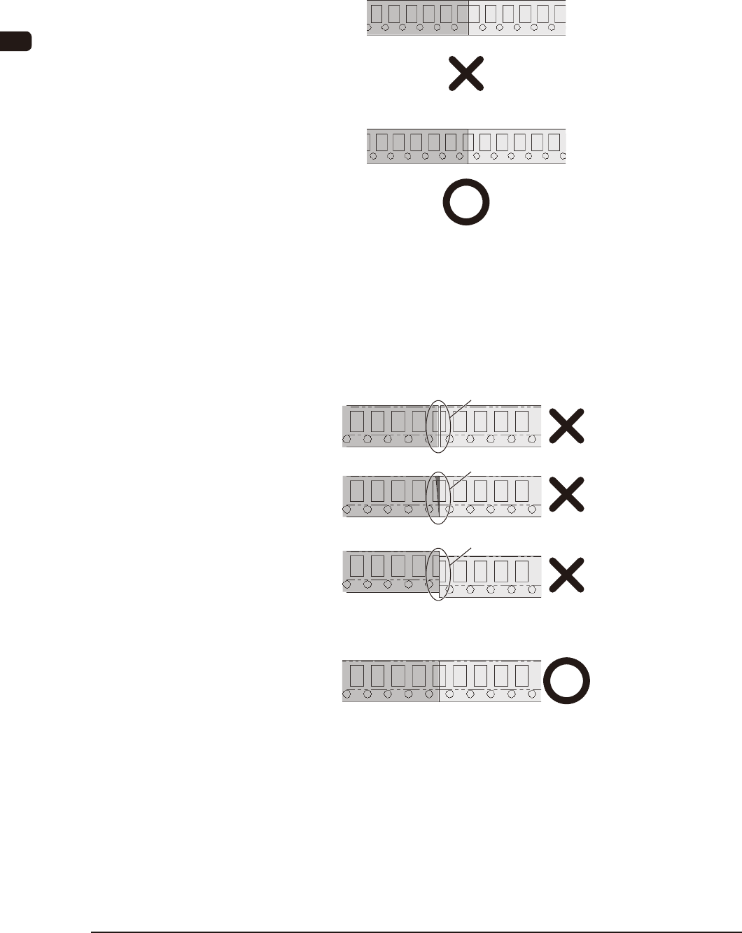 (2)継ぎ目でキャリアテープの隙間や重なり、ずれなどが発生しないよ