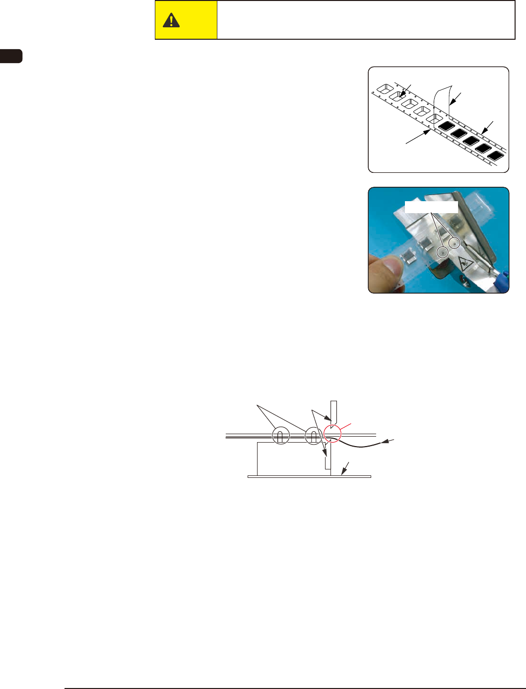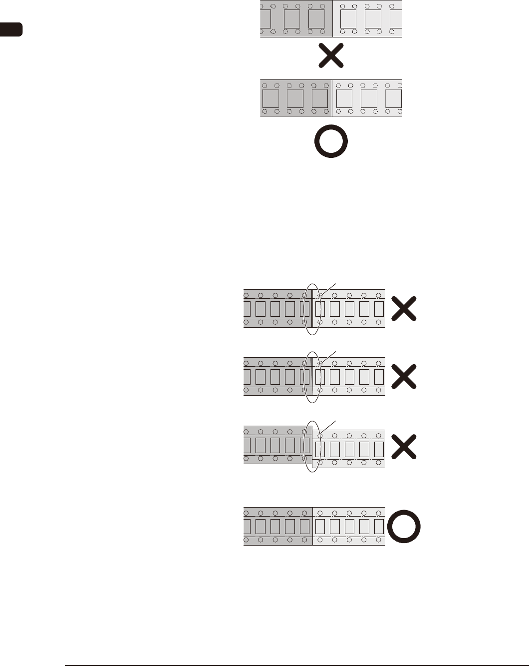 (2)継ぎ目でキャリアテープの隙間や重なり、ずれなどが発生しないよ