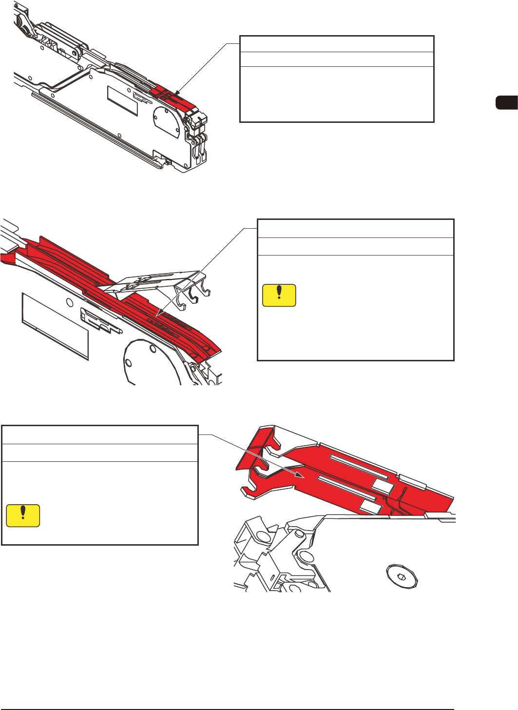 OM-1605 7-5 7. メンテナンス 7.4.2 サプレッサ部 サプレッサ上面 毎日 清掃 ゴミ、ほこりを掃除機で吸取り、ウエスで 拭取ってください。 テープはく離部にたまった紙けばなどの ゴミを歯ブラシで取除いてください。 FG2 シュート 1週間ごと 清掃 サプレッサを持ち上げ、アルコールをしみ こませたウエスで清掃してください。 (a) マグネットプレートは取外して 行ってください。 (b) 異物が付着した状態でテーピン …