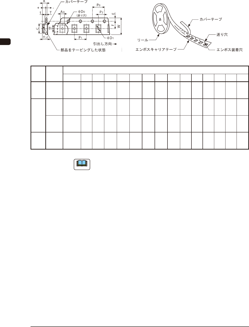 また、カバーテープの厚さは、0.07 mm 以下(粘着質含む)とします。