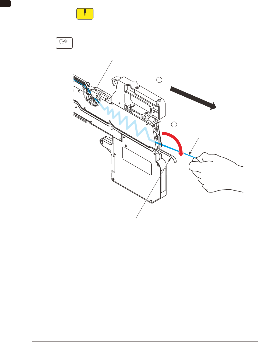 OM-1605 2-16 2. テープの取付けおよび取外し方法 2.4 カバーテープの取出し テープを交換する場合、またはスプライシング作業を行う場合は、その都 度、カバーテープ収納部内のカバーテープを取出してください。 注 意 カバーテープ収納部内のカバーテープが満杯になり、カバーテープ収納 部に押込められなくなると、巻込みギヤがロックし、動作不良や破損の 原因となります。 手順 (1) カバーテープ取出し蓋を開き、カバーテープ収納…