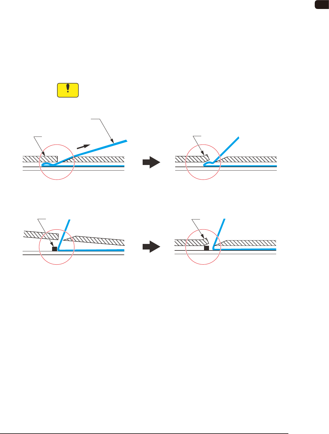 テープをカットする時には、先端を折曲げないでください。