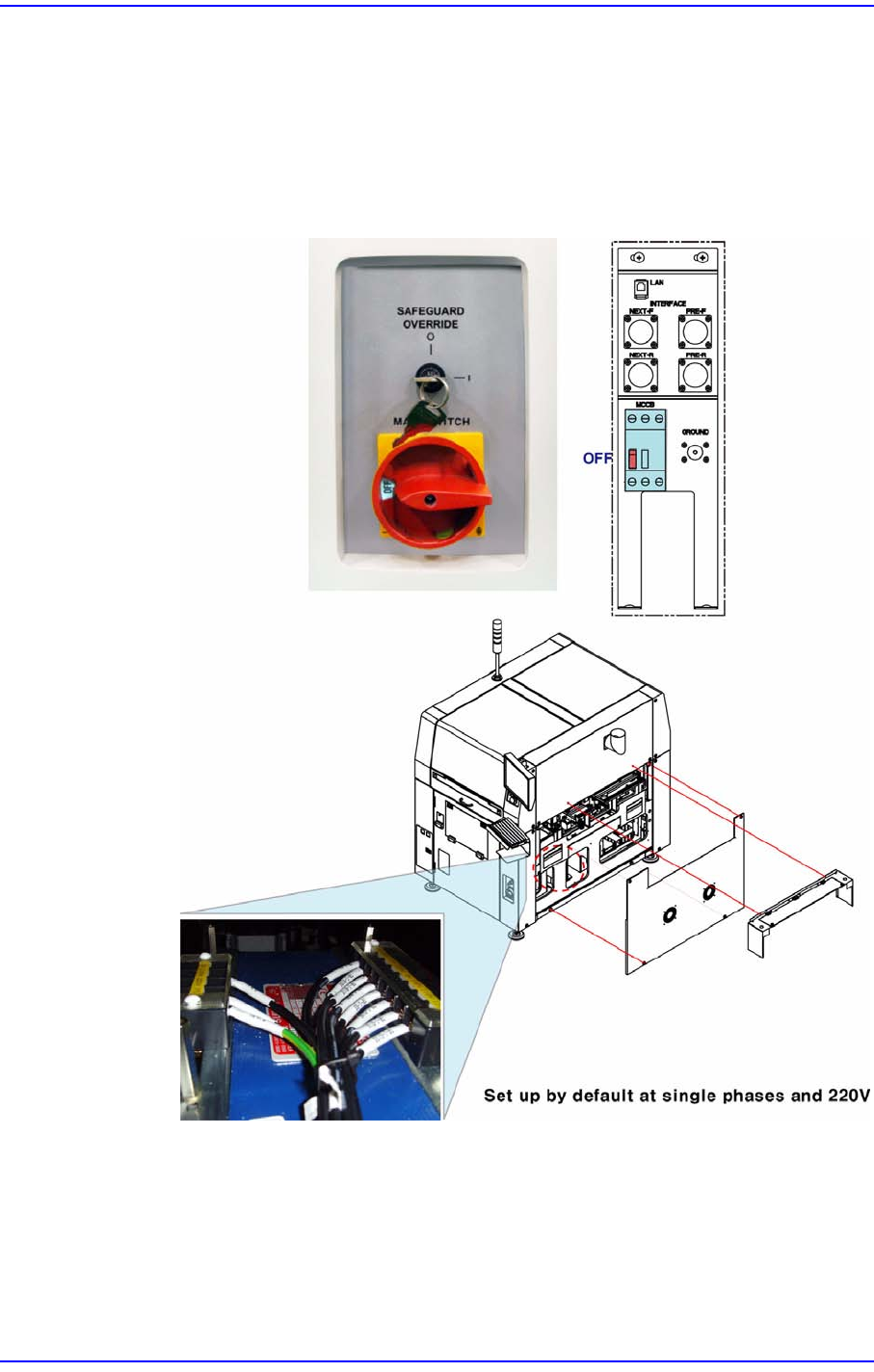 2-4 Samsung Screen Printer SP1 Introduction 4. 接线方式 : Y- Y 5. Rated primary voltage : 单相 100/1 10/120/200/220/ 240 V 一次侧额定电流 : 6.96 A 6. 二次侧电压 : 单相 220 - 2.5 kV A 设备整体的耗电量 :最 大 3.0 kV A(rms) 频率 : 50 / 60 Hz 危险 如果不使用符…