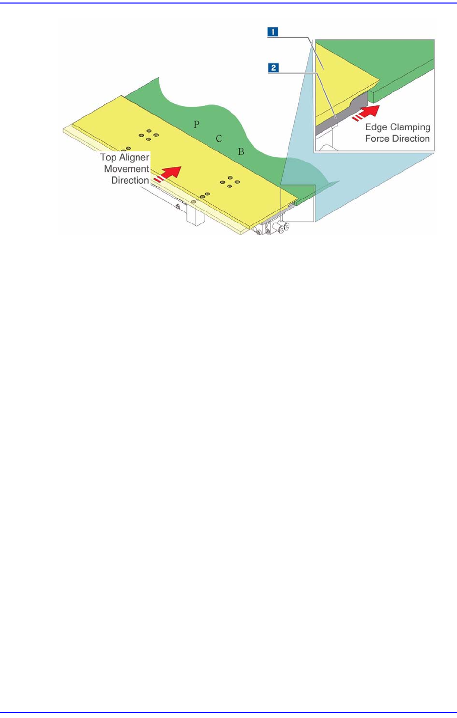 由上端对准器针对PCB弯曲进行了补偿后、侧面的夹边就进行动作而完全固定