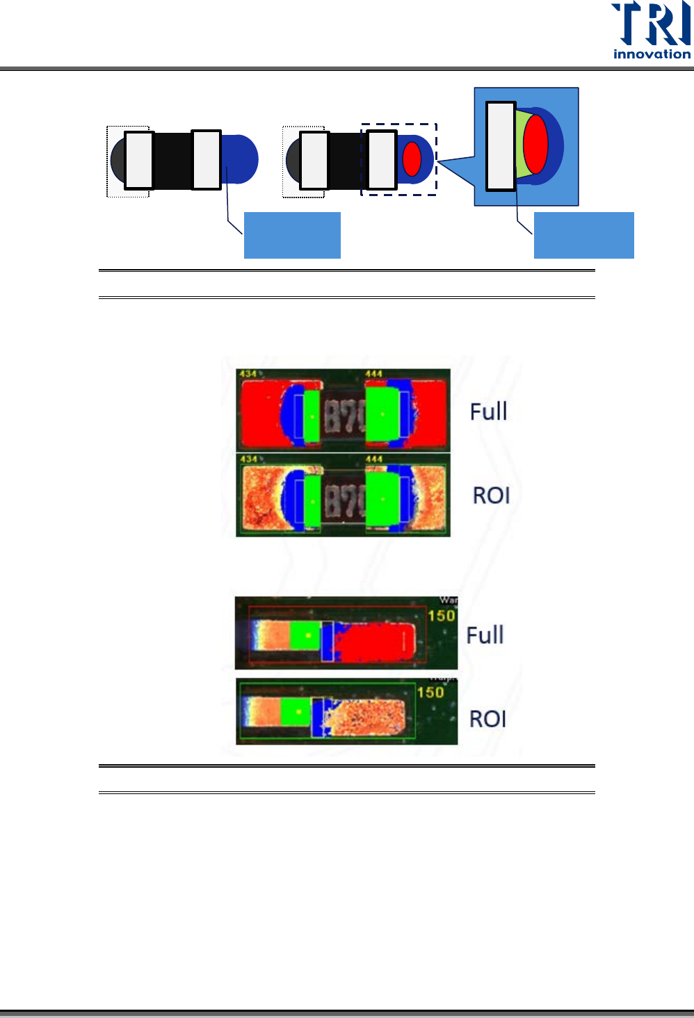 Test Research, Inc. TR7700Q E User Gu ide – S o f twar e 88 圖 142 :未沾錫焊盤 (%) 參數示意 圖 參數類型:選擇使用 UserDefine 或者 IPC Class 。 確認體積比例 ( 僅元件類 型為 Lead 可 使用 ) : – 焊錫體積:將錫區分為 兩部分,並比較兩 個區域的體積差異 來評估是否有積 錫狀態。 其計算公式與說明示意 圖如下。 圖 143…