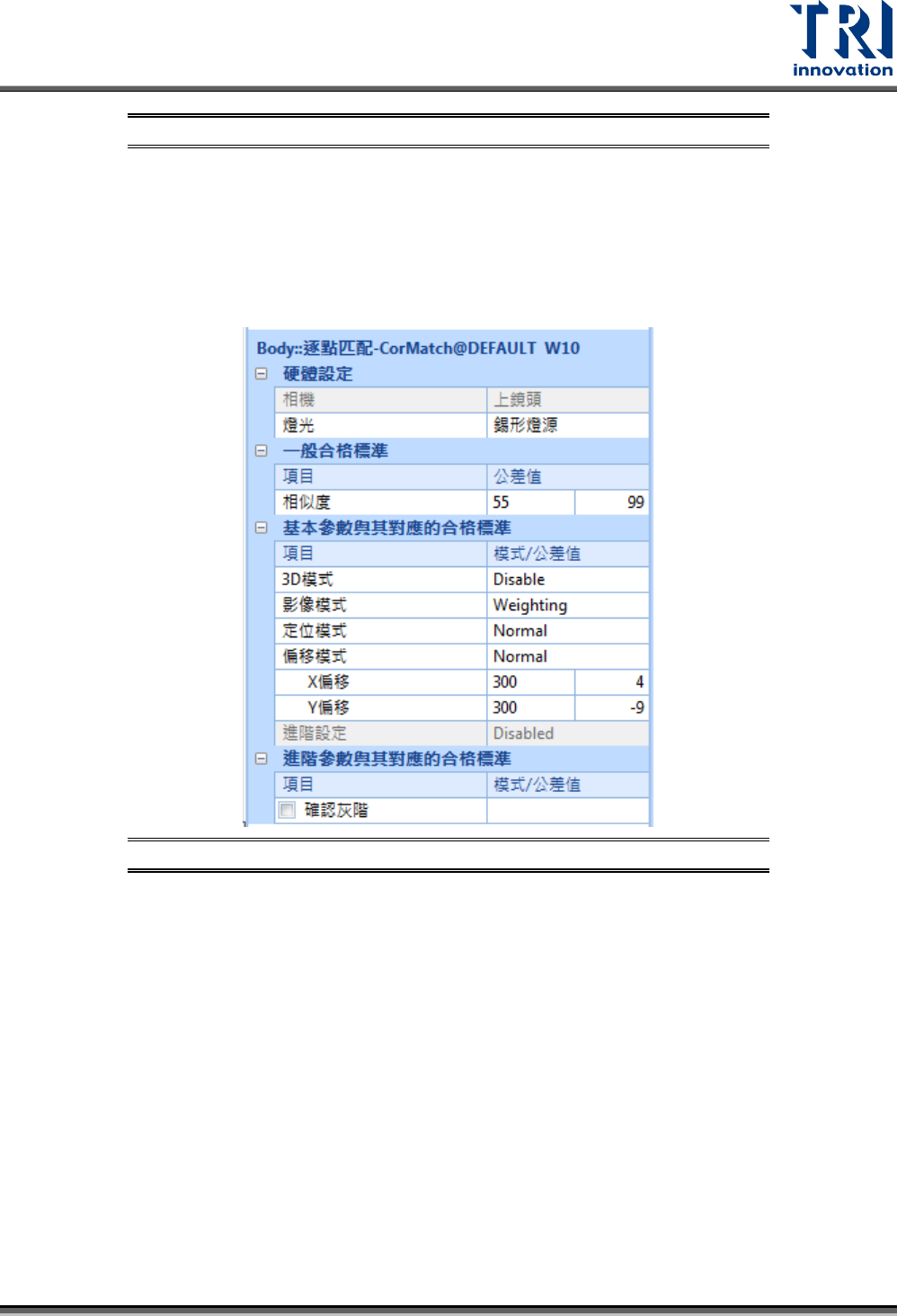 圖 165:逐點匹配框參數設定畫面