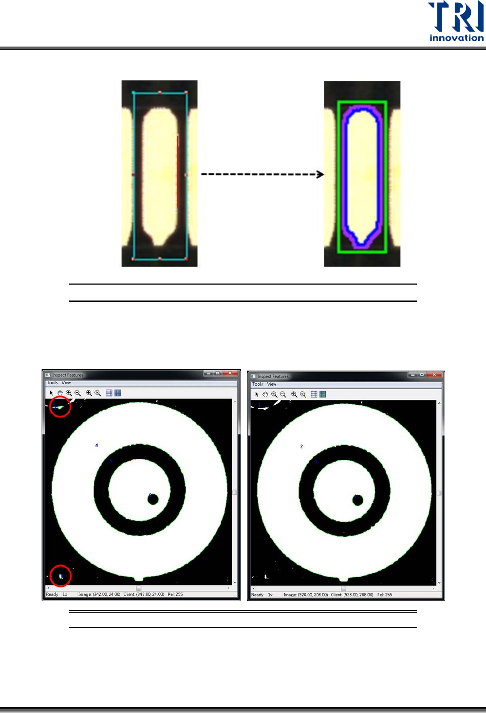 列入區塊面積內進行比對計算。若有勾選時,如右下圖所示,外部的異物將會被列入區塊