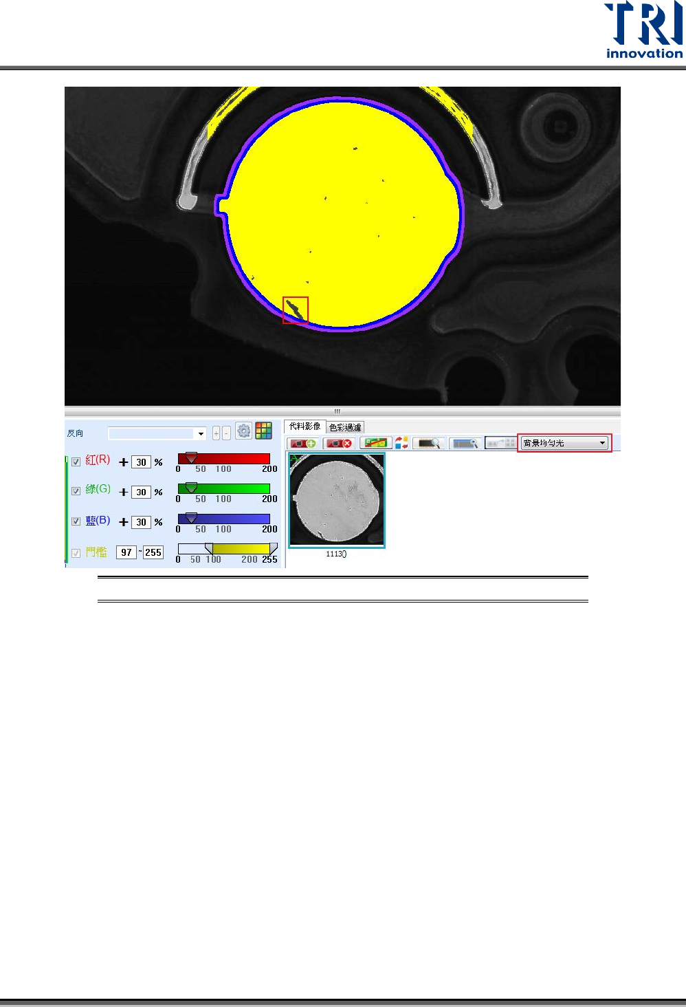 圖 254:在背景光源下切出欲檢測的缺陷