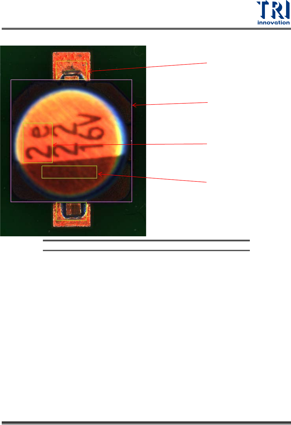 Test Research, Inc. TR7700Q E User Gu ide – S o f twar e 175 3.7.9 鋁質電容 ( C AE ) 圖 279 :鋁質電容 元件所需檢 測框說明 演算法: Vo id 框 用途:檢測空焊 演算法: Patm atch 或 Chip 框 用途: 檢測 缺件並定位 Void 框 演算法: OCV 框 用途:檢測錯件 演算法: Vo id 框 用途:檢測極反