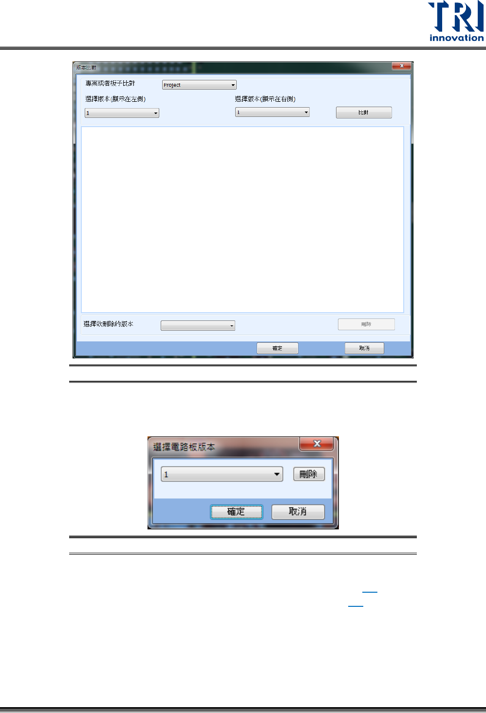 – 版本比對:進行同專案不同版本的比對。點選後會出現如下圖的介面視窗。使用者可以利