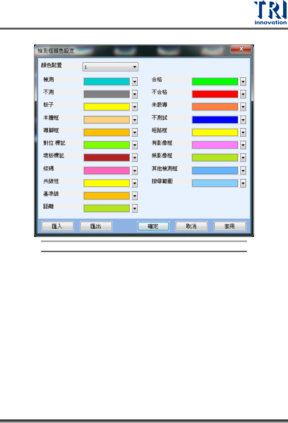 匯入:將此設定導入,與產線其他機台一致。