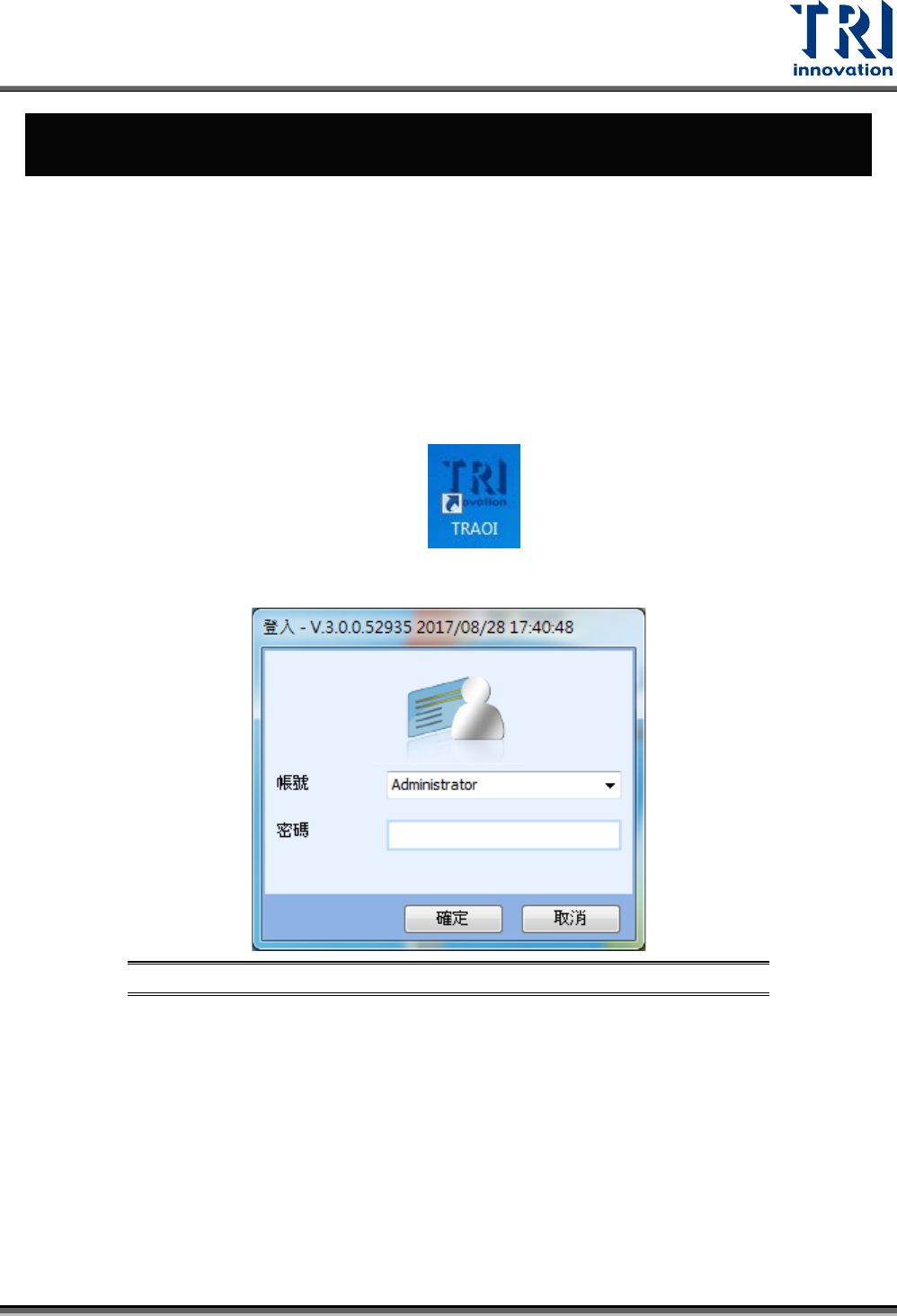 左鍵連點在 Windows 7桌面上的 TRAOI 捷徑( )來開啟主程式。當正常開啟時,會出現