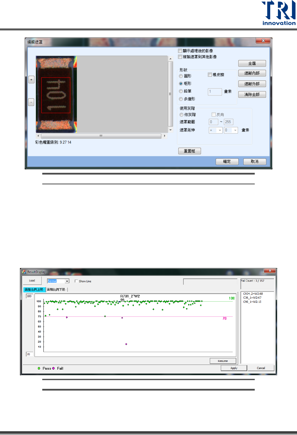 – 通過標準:設定微調時的檢測新標準。在檢測後微調時,若有發現誤判情況,可點選此功