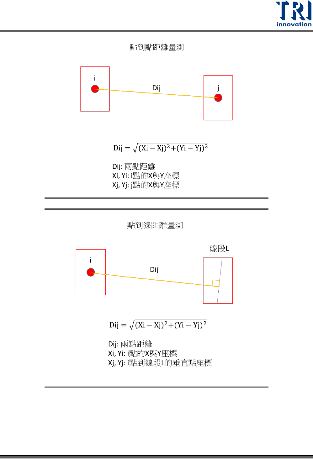圖 498:點到點的距離量測計算方式