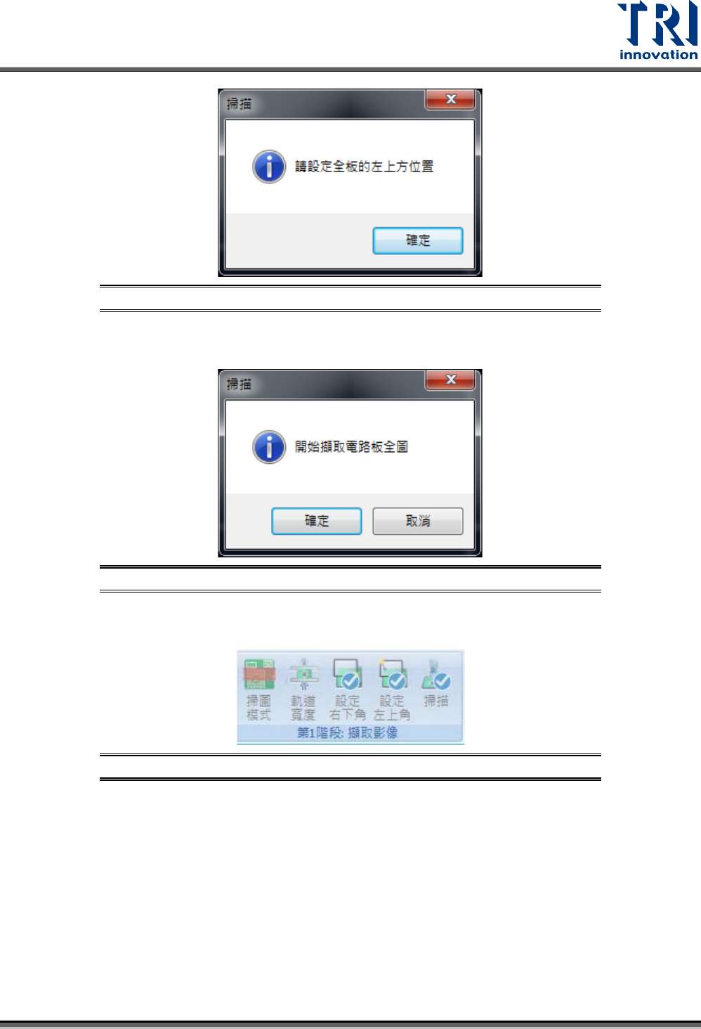 步驟5. 當設定完左上角後,會跳出以下的引導視窗,告知將要進行掃板動作。按下“確定”來進行