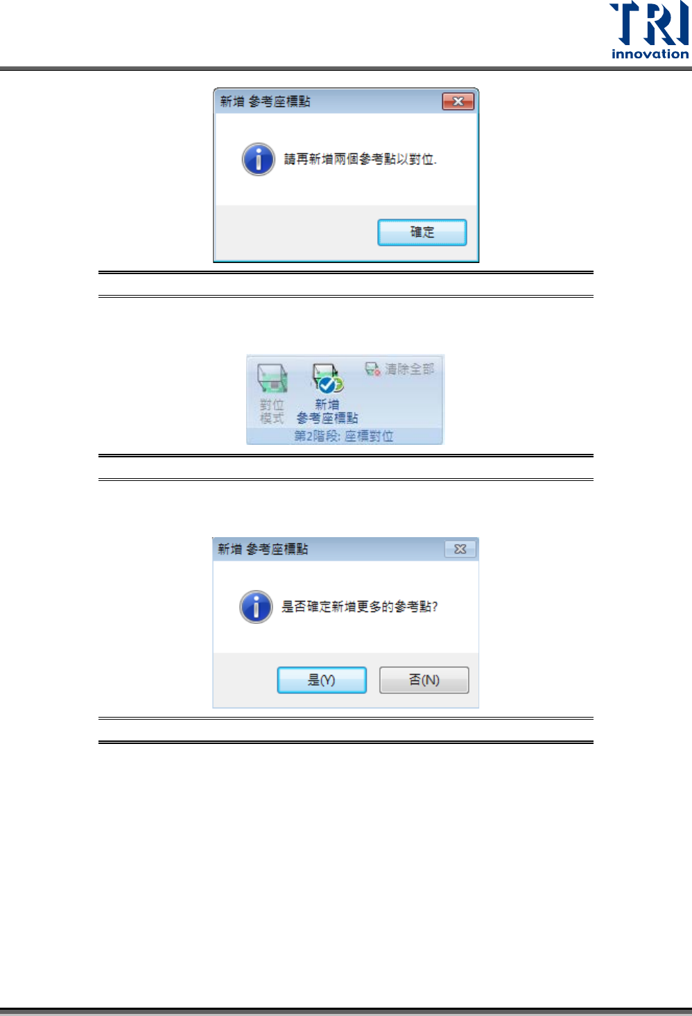 步驟6. 通常在增加完三個參考座標點以後,系統會跳出如下圖的引導視窗,詢問是否還要新增更