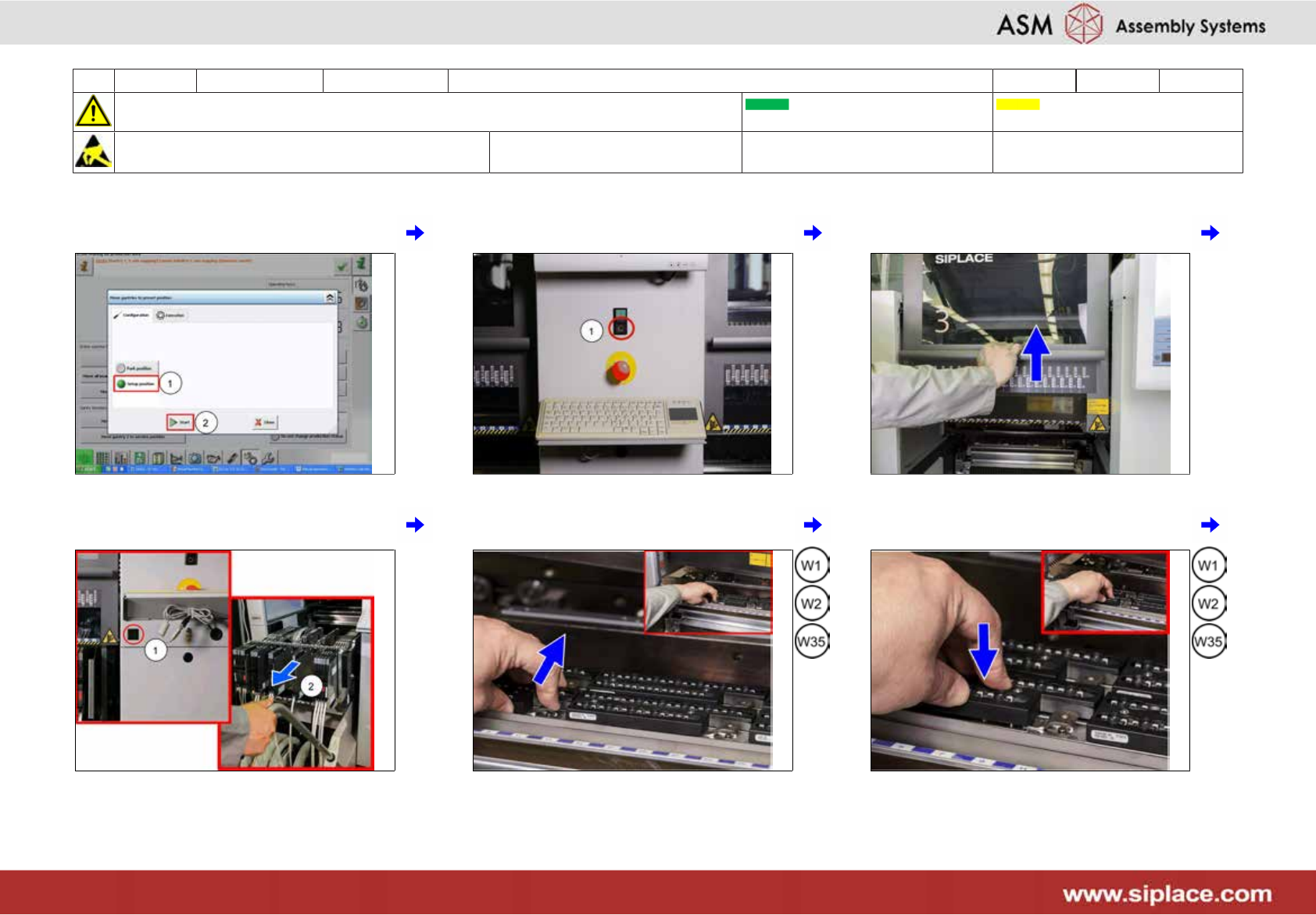 2 每三个月 X_系列 S 吸嘴 ********* 5分钟 3/3 注意开始维护前,请参阅用户手册中的安全说明 贴片机状态开启 传送系统空 注意!遵守防静电守则 工具: 易损件: W1, W2, W35 耗材: 13 为其他所有悬臂重复第 9 到 12 步