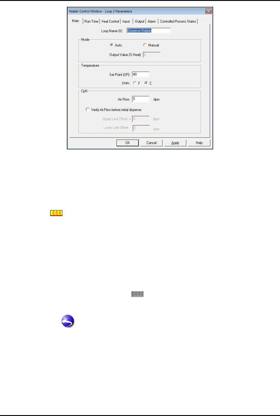 8. Activate the heater by double clicking the icon in the On/Off column until the heater loop