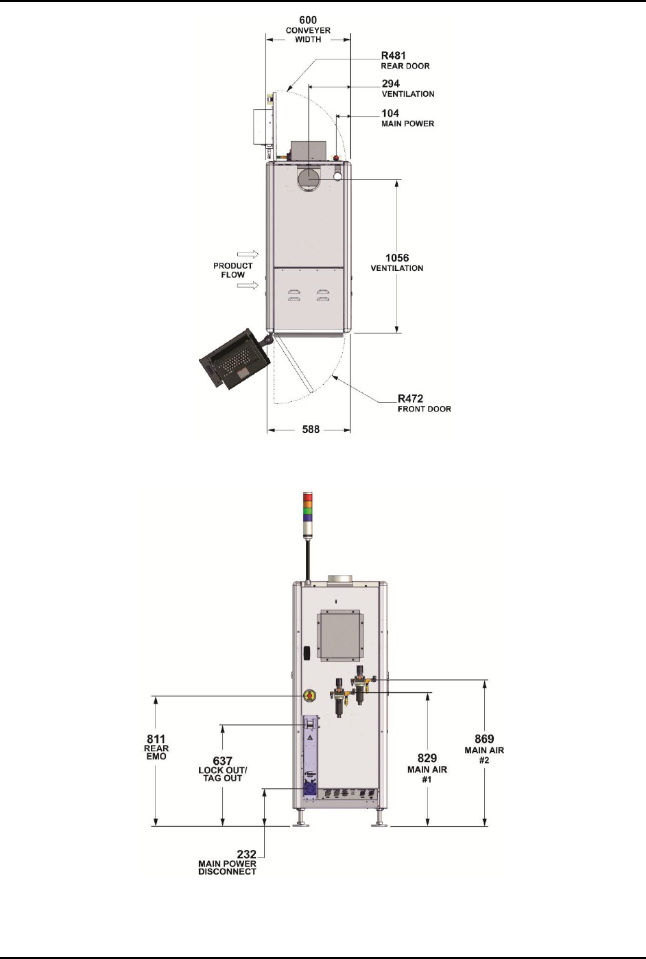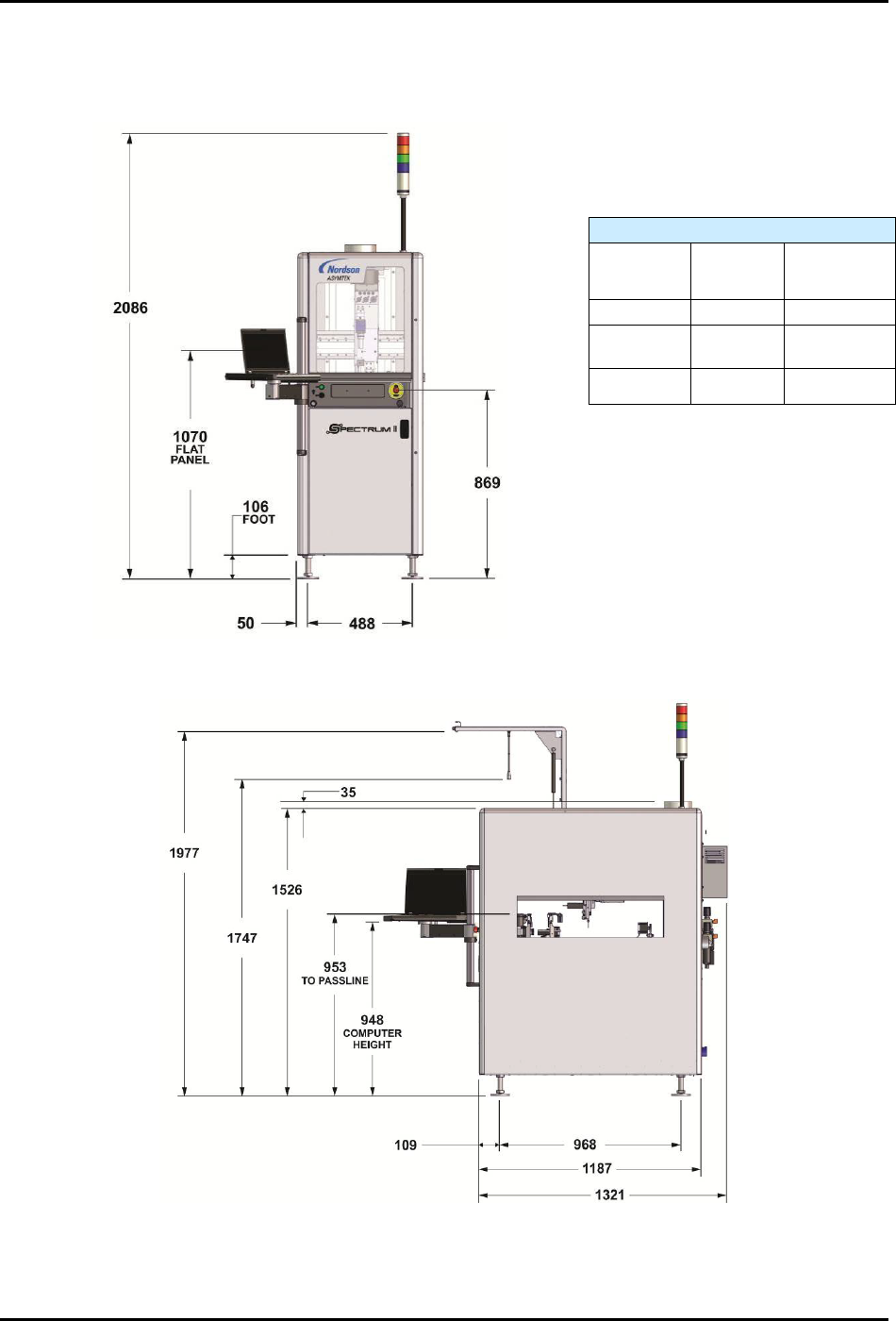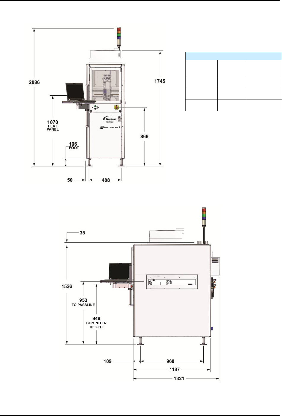 S2-9 XX X Se ri es Disp ensi n g Syst em IOM Man ual Specifications 9-6 © 2023 Nordson Corporatio n Top View (mm ) Back View (mm) Figure 9-2 S2- 9XXX System Dimensions (2 of 2)