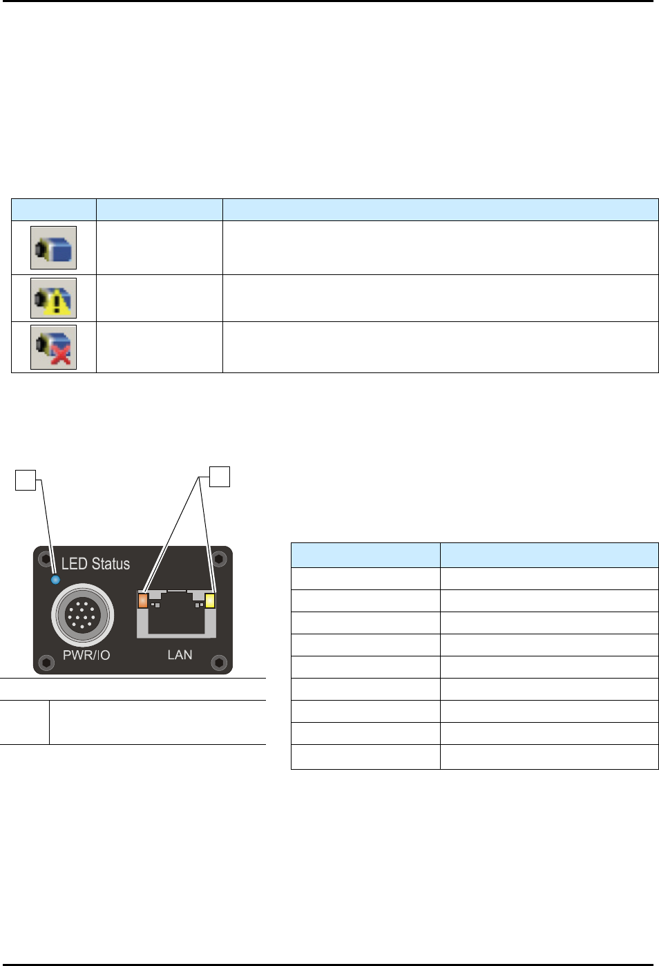 1 Camera Status LED Fast Flashing Blue Ethernet Cable Disconnected