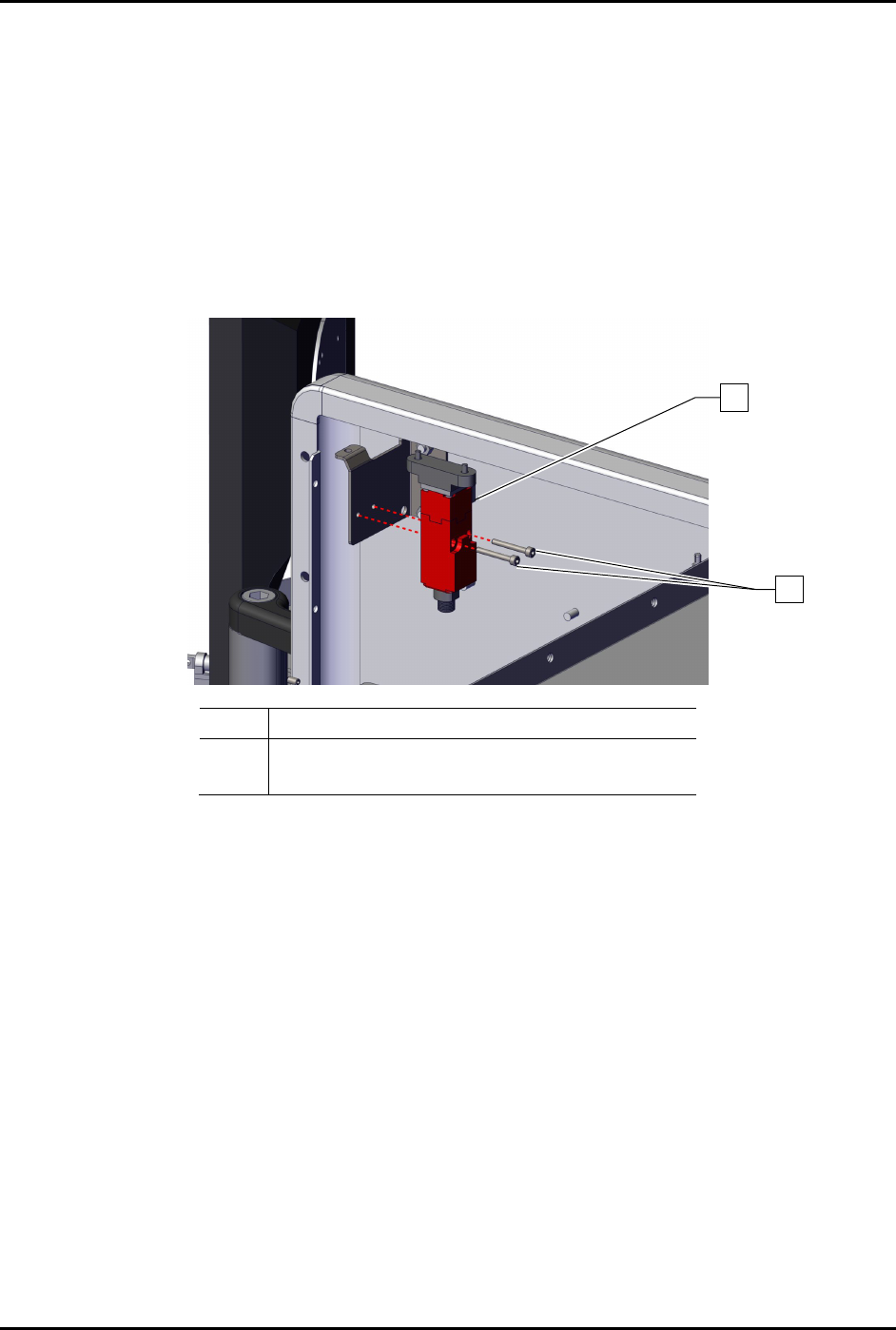 1. Install the interlock switch to the dispensing system with two (2) screws.