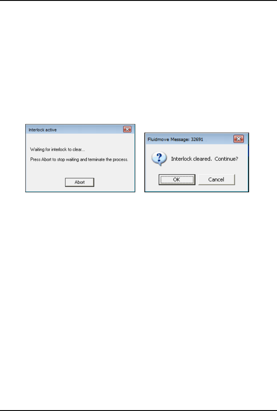 When the interlock is triggered, Fluidmove will display an Interlock Active message (Figure 2-11).