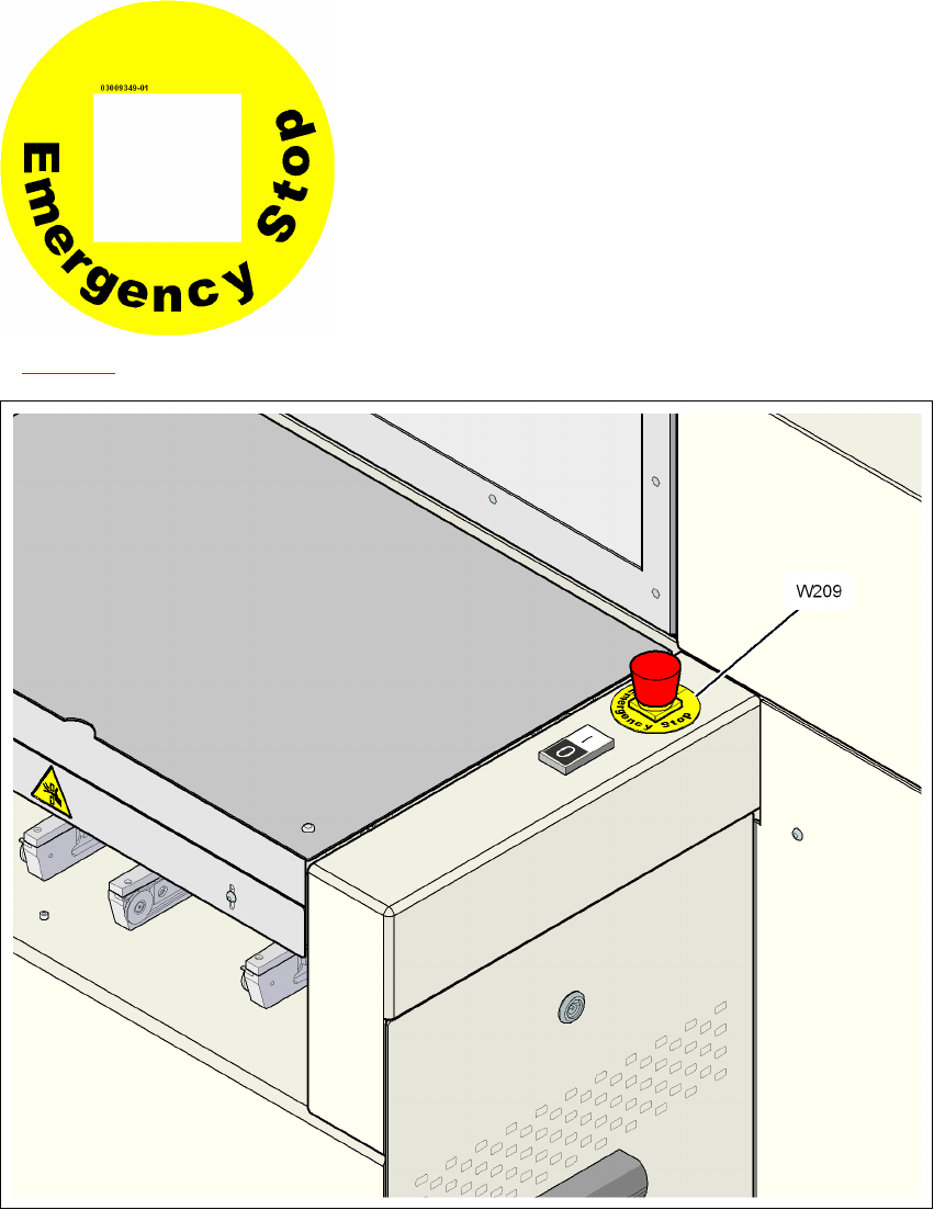 図 2.2 - 11 非常停止ボタンの警告ラベル W209