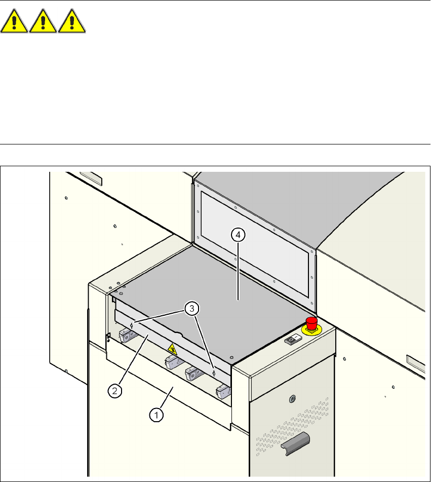 → 部品トロリーとマシンベース間の隙間に絶対に入らないこと ( ページ 52