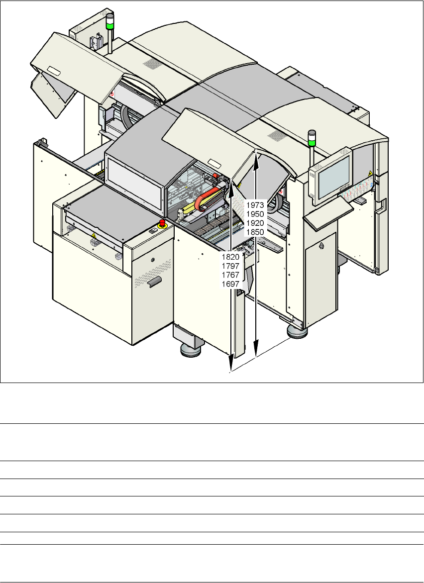 ユーザーマニュアル SIPLACE D4 3 マシンのテクニカルデータ ソフトウエアバージョン SR.605.xx 以降 2008 年 7 月版 3.3 寸法と重量 91 3.3.2 マシンの寸法 3 3 図 3.3 - 1 mm 単 位のマシン寸法 ( ベーシックマシ ン ) 3