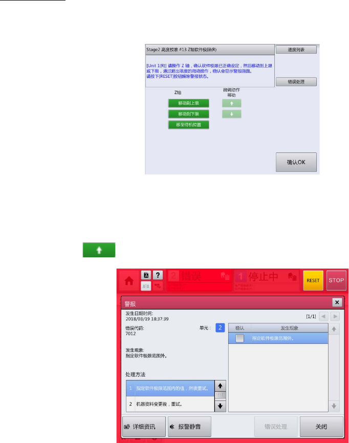 进行左右一次性更换台车上升、前面护罩的锁定后,Z 轴移动到软件极限的上限。