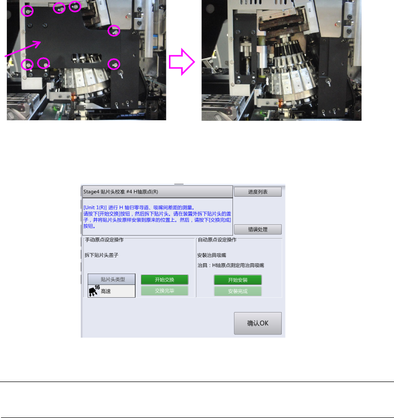 打开前面护罩,卸下校准对象装置的贴片头右侧护罩。