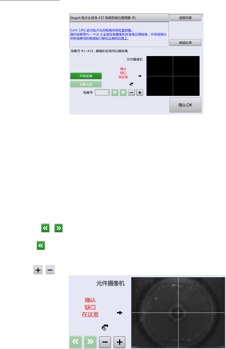 如触摸 / ,可向前后的 吸嘴号移动,出现所示吸嘴号上摄像机校准用治具吸嘴的图像。