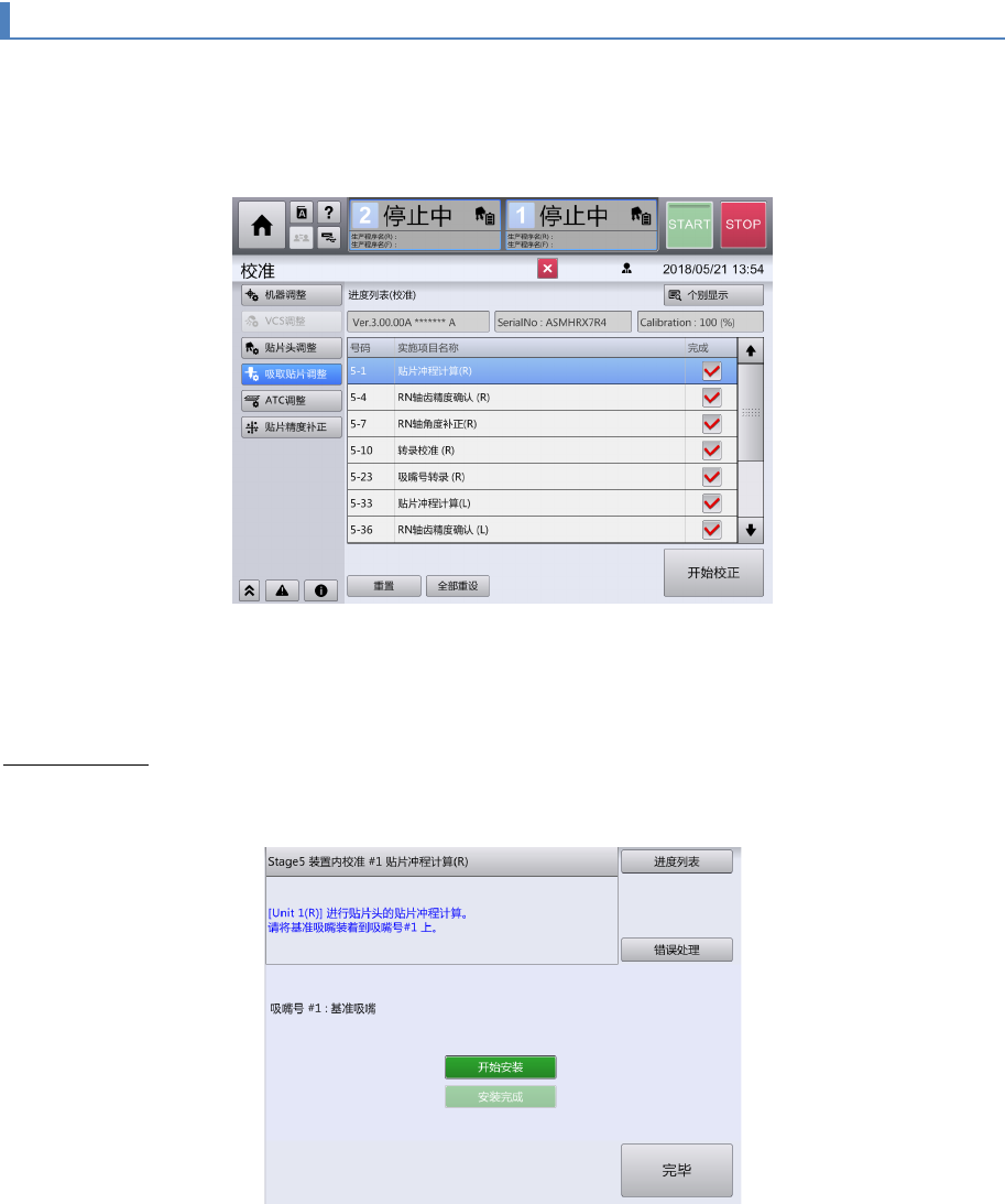 全部工序完成后,显示为[已完成贴片头校准。]。
