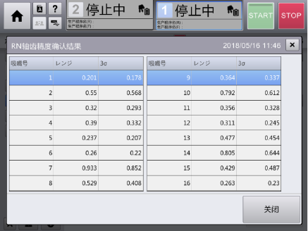 齿轮精度结果,确认数值后触摸[关闭]。