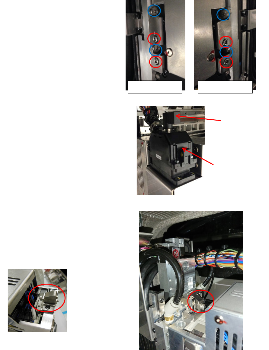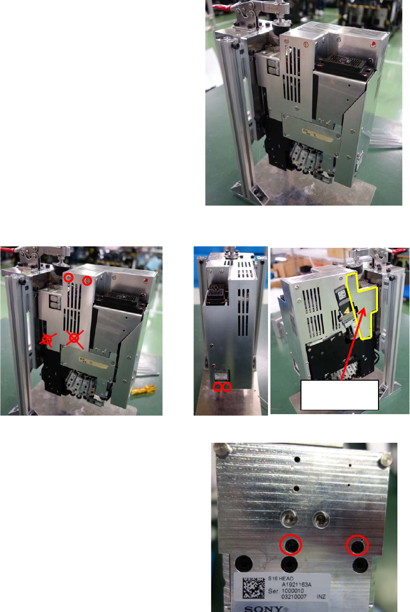 第 2 章 操作顺序书 2- 4. 维护 12 、拧松红圆圈处的 4 根固定贴片头单 元 的螺丝。拧松 4 根蓝色的螺丝。 13 、使线缆连接器的锁 紧杆向逆时针方向 旋转,拔下连接器。 14 、充分松开用来固定 贴片头上部的内六 角螺栓,卸下贴片头。 为防止贴片头落下,松开螺栓时 要用手 拿住。 贴片头安装部的螺丝状态 贴片头单元左侧 面 贴片头单元右侧 面 锁紧杆 线缆连接器 201