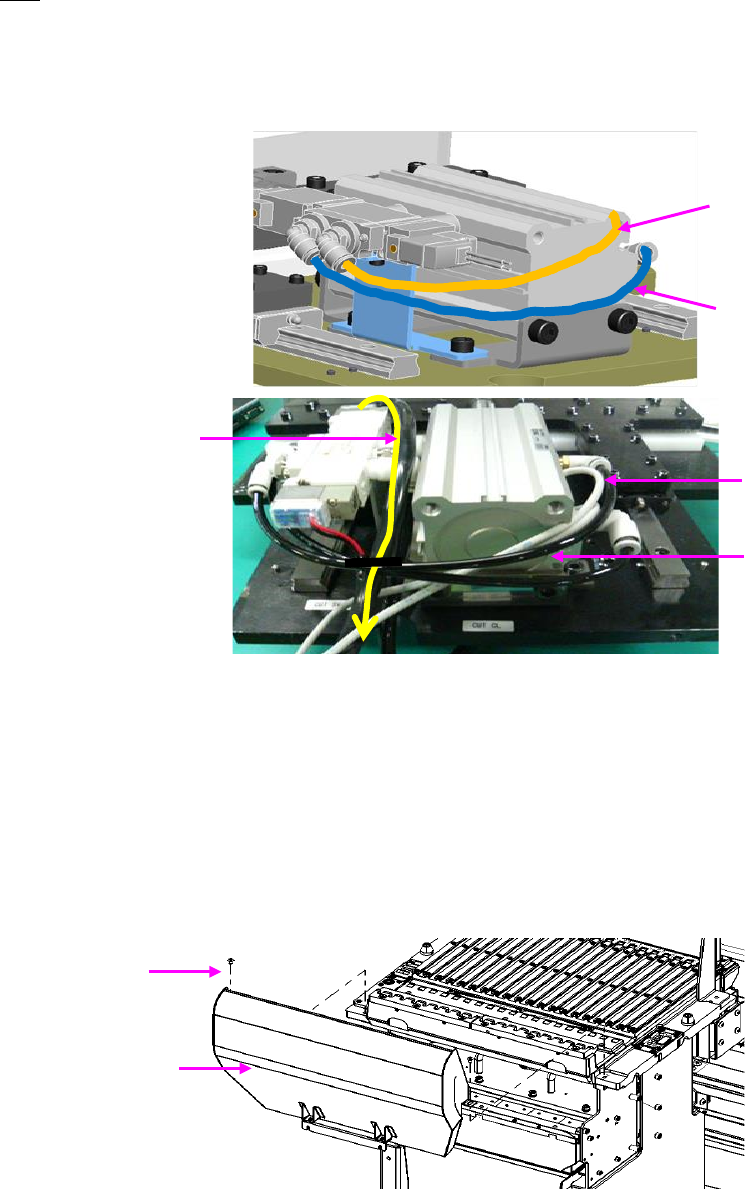 第 2 章 操作顺序书 2- 5. 配件更换 5. 在将滑槽下部按在切带机单元上的状态下,安装托架。 6. 准备 2 台 EF08H SR ,安装在台架的两端。 7. 在台架的两端安装,使滑槽单元接触到 ET F 。 8. 护罩相关的安装要按照相反的步骤安装。 滑槽 切带机 托架 按住滑槽 按住托架 螺丝 使之与 ETF 接触 螺丝 245
