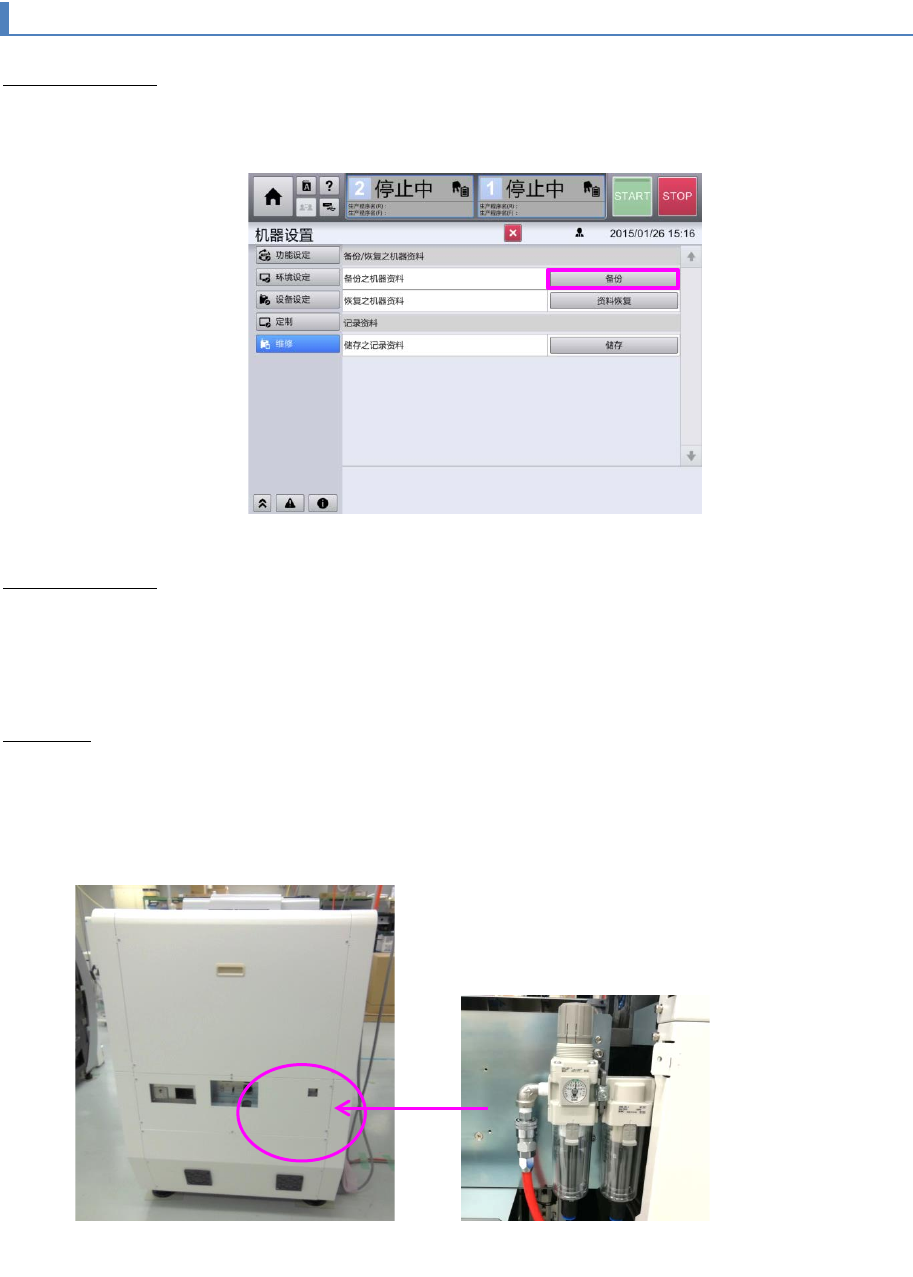 1 显示机器设置菜单,将机器数据备份到 USB。
