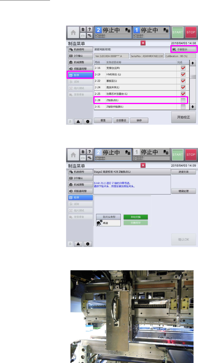 7 此后,请按照 2-5-6 更换贴片头单元 的操作顺序 8~12,进行贴片头的安装、校准。